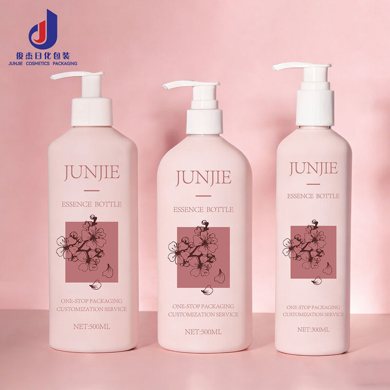 Botol pompa plastik 500ml dan 300ml yang dirancang untuk sampo, losion, dan berbagai produk kosmetik.